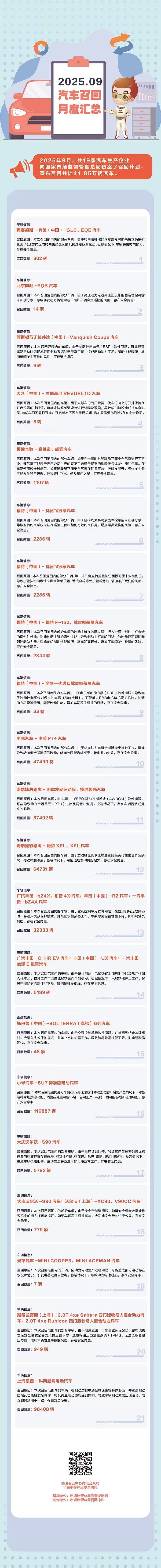 - 2025年9月汽車召回月度匯總(2025-10-25)